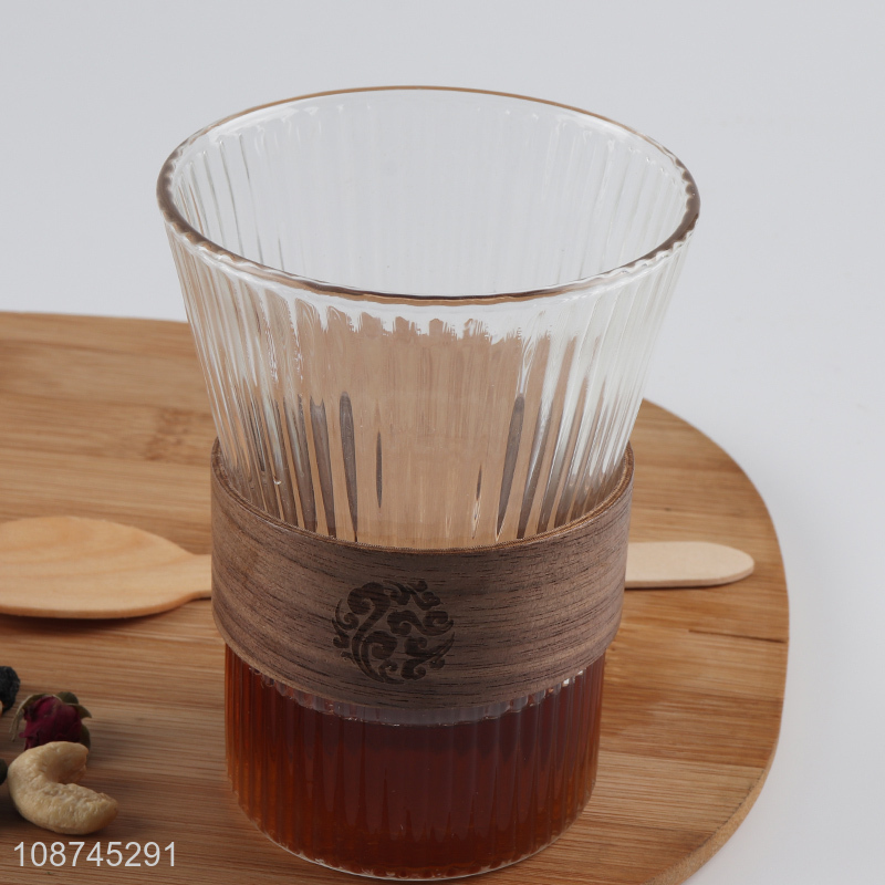Good quality glass coffee mug glass juice cup with wooden cup sleeve
