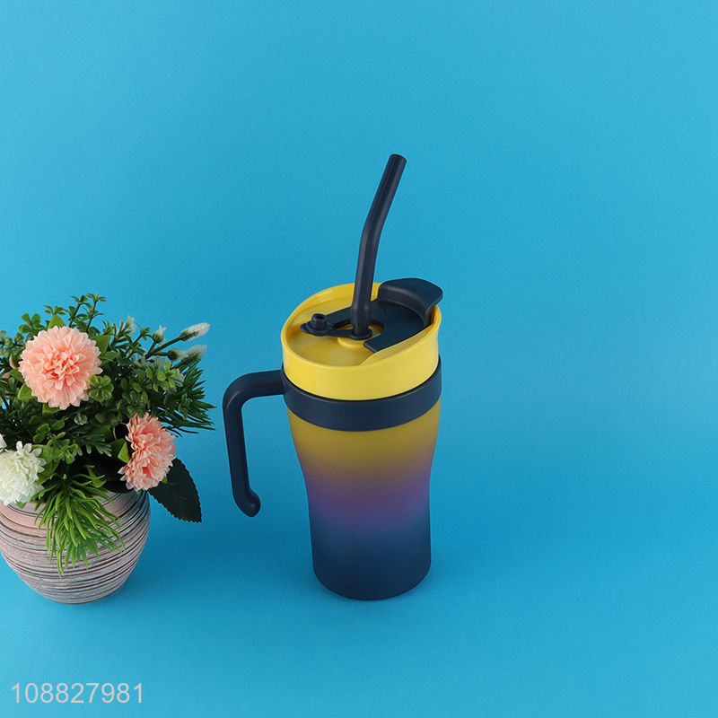 Hot selling car plastic water cup with handle and straw