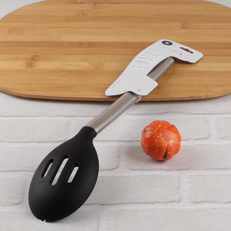 High quality slotted silicone cooking spoon with stainless steel handle