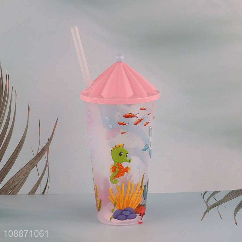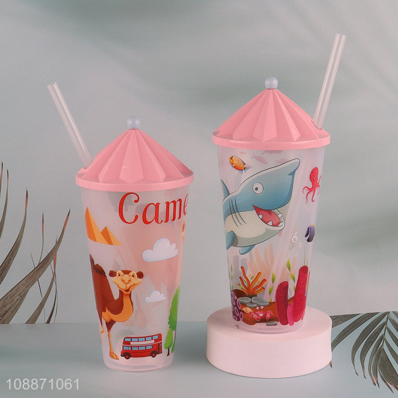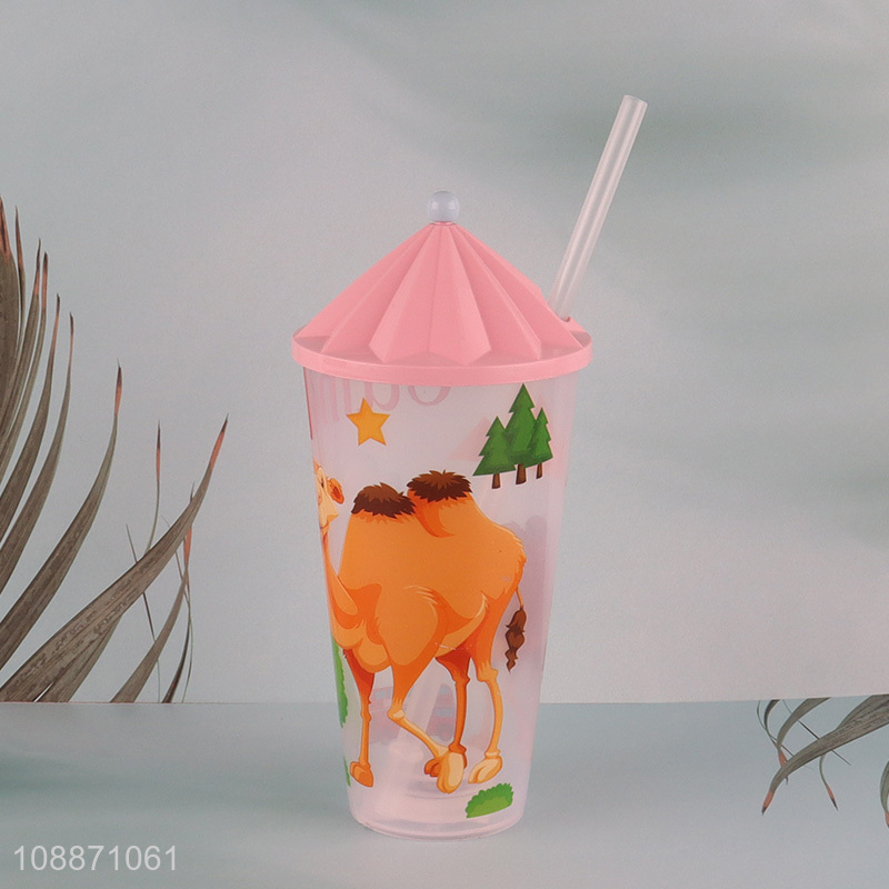 Top selling cartoon straw water cup with lights&lid