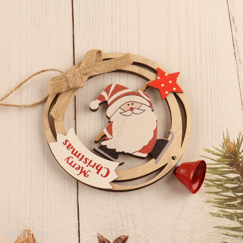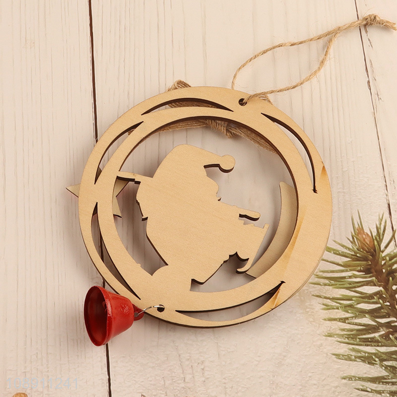 Wholesale Hollow Wooden Snowman Christmas Tree Hanging Ornament with Bell