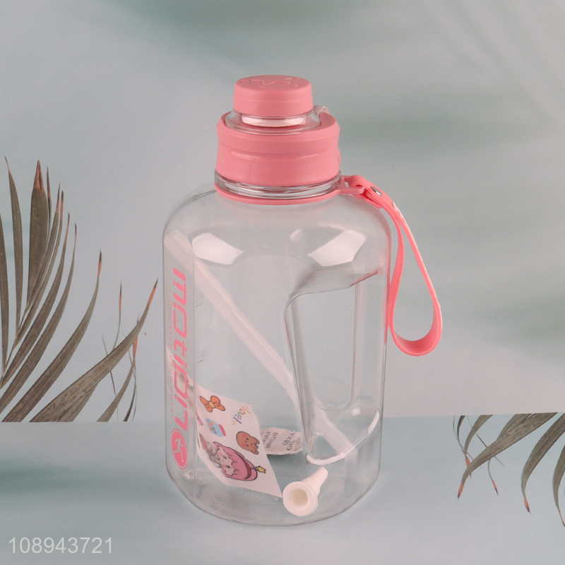 Good Quality 1600ml Clear Plastic Sports Water Bottle with Straw & Stickers