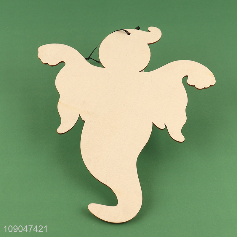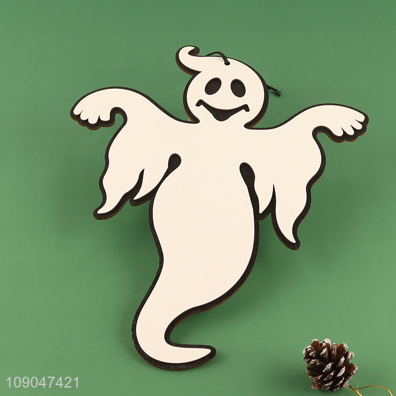 Factory direct sale ghost shape wooden Halloween hanging ornaments for decoration